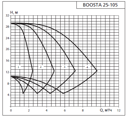 Напорные характеристики APD3 Boosta 25-1 05