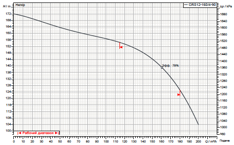 Напорные и технические характеристики насоса Ciris CRS 12-160/4 нро.