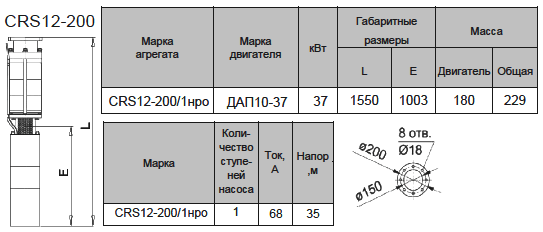 Характеристики технические и напорные насоса CRS 12-200/1 нро.