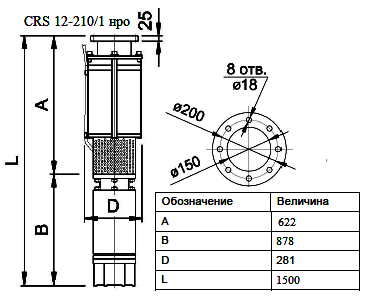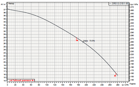 Технические, рабочие характеристики насоса Ciris CRS 12-210/1 нро.
