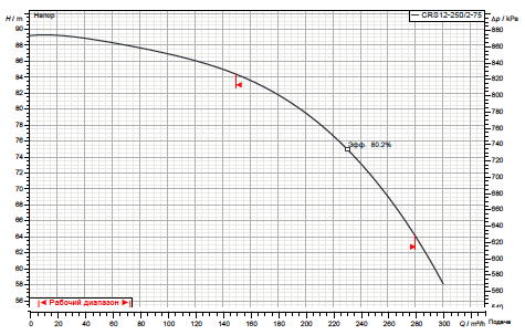 Рабочие и технические характеристики насоса CRS 12-250/2 нро.