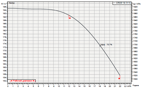 Рабочие и технические характеристики насоса CRS 8-16/9.