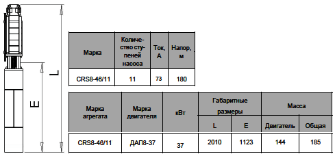 Центробежный насос CRS 8-46-11 (Сiris) - многоступенчатый, вертикальный погружной используется в системах промышленного, городского и сельского водоснабжения для подачи из скважины чистой артезианской воды.