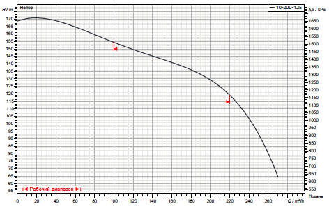 - подача в интервале: от 150 м³/час до 250 м³/час;