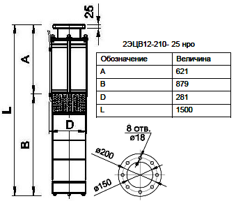 2ЭЦВ 12-210-25 нро, где: