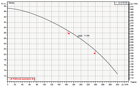 - интервал напора: от 29 до 21,5 м;