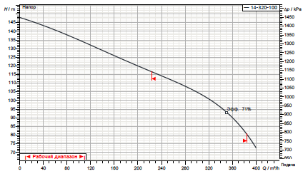Технические и рабочие характеристики насоса 2ЭЦВ 14-320-100 нро.
