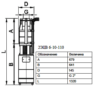 - 2ЭЦВ: (2 - номер модернизации насоса, Э - электронасос, Ц - центробежный, В - для воды);