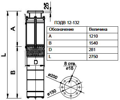 асинхронный электродвигатель погружной ПЭДВ 12-132;