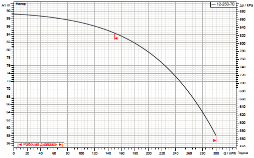 - интервал подачи: от 150 м³/час до 300 м³/час;