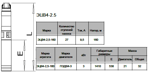ЭЦВ 4-2.5-160 - технические и рабочие характеристики, параметры насоса: