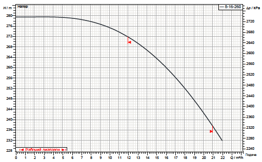 - подача в интервале: от 12 м³/час до 21 м³/час;