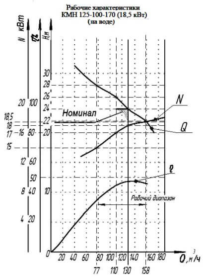| КМН 125-100-170 Ю | 130 | 24 | 18,5 | 828х400х496 | 212 |
