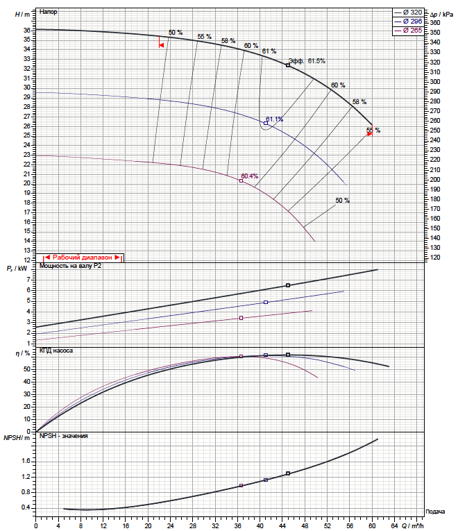 Технические и напорные характеристики KR 65-50-315/320-4/11.