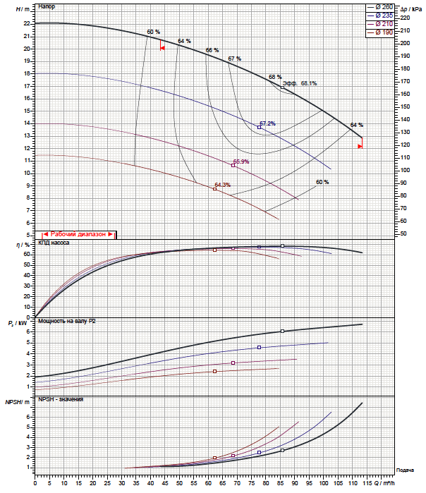 KRL 80-250/260-4/7.5 Kordis (Кордис) - технические и рабочие характеристики.